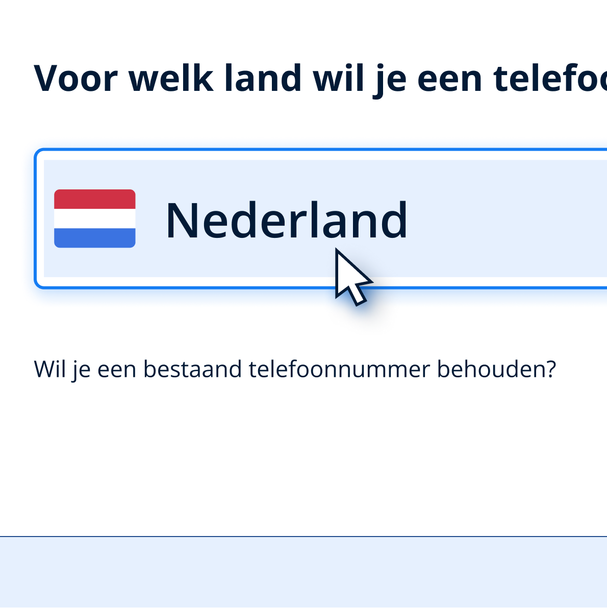 Activeer in slechts een paar klikken een lokaal nummer met de netnummer van uw keuze. Gebruik het direct vanaf uw computer of smartphone.